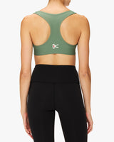 Engineered for comfort, coverage and support with a high degree of mobility, the twin layer bra is constructed from a quick- drying and moisture-wicking recycled four-way stretch fabric. The bra features a classic racerback silhouette, designed to minimize friction and bounce while moving with the wearer.