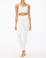 Restore Legging - the sustainable solution to your active wear needs. Made with high-quality recycled yarns, these leggings not only look good, but they're good for the planet too. The moderate compression fit is designed to slim and sculpt your legs while still allowing you to move freely. Plus, the fit is in perfect harmony with your form, so you can feel confident and comfortable. Made in LA, the Restore Legging is the perfect blend of fashion and function. Whether you're hitting the gym or running errands, these leggings have got you covered. So go ahead, do your part for the environment and look fabulous while doing it with the Restore Legging!
