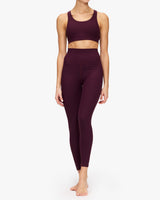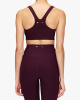 - Full coverage bra with extra support in Fig - Scooped T-bar back with printed arrow logo - Internal underbust elastic and removeable cups - Recycled soft peached with a brushed handfeel - Moisture wicking - Breathable, quick drying and extra soft"