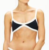 Bralette, thick strap, cinched in front minimum coverage, medium support, no adjustability