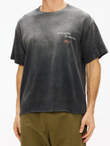 Boxy fit cropped-length tee in mid-weight cotton. Single blind-stitch finish at the collar and sleeves. Raw body hem. Crafted start-to-finish in Japan at the brand's premiere denim factory, with nuanced processes that are typically found on denim, lending to an authentically vintage appearance. Original screen printed graphics include "So Many Fish, So Little Time 1995" at the front, and 'Northwest Trout Tour' at the back. Made in Japan.