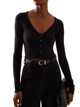 ÉTERNE's Cropped Cardigan is crafted from the brand's butter-soft, ribbed cotton modal blend, offering a slim fit and cropped length—a versatile essential for everyday wear.