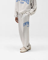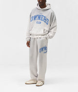 Black sweatpants in a relaxed silhouette, crafted from heavy loopback cotton. Elasticated waistband. Featuring a rear patch pocket to the left leg and welt hand pockets finished with elasticated cuffs. Owners’ Club logo printed to left leg.