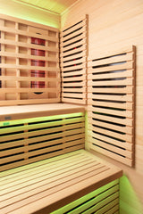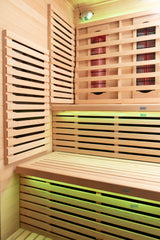 ✔ Hybrid heating system combines advanced carbon FAR panels with halogen + quartz full-spectrum emitters for complete therapeutic coverage