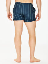 The swim shorts inspired by the model worn around the Mediterranean in the early 80s. Revisited with fisherman stripes. Upgraded in an Italian recycled, light-weight and quick-drying polyester. Offering UV and chlorine protection. Breathable micro-mesh lining. Tailored fit, short legs and side slits for an enhanced silhouette. Elastic waistband with adjustable drawstrings. Side pockets and interior key pocket. Featuring the double black-lacquered RD signature eyelets on the side.