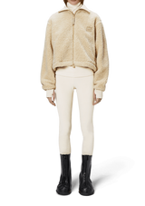 Kofu Fleece Short Jacket is a cropped version of Rains' heavyweight Kofu-fleece. On the outside Kofu Fleece Short Jacket is characterized by its heavy fleece aesthetic -- on the inside a nylon liner works as an insulating layer for blocking out chill.