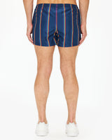 The Ron Dorff x Equinox Exclusive Pride Capsule Swim Shorts inspired by the styles worn around the Mediterranean in the early 80s. Upgraded in an Italian recycled, light-weight and quick-drying polyester. Offering UV and chlorine protection. Breathable micro-mesh lining. Tailored fit, short legs and side slits for an enhanced silhouette. Elastic waistband with adjustable drawstrings. Side pockets and interior key pocket. Featuring the Featuring the exclusive Equinox x Ron Dorff lacquered signature eyelets on the side. Close-fitting sizing. Take your usual size for a tapered fit. Go up one size for a looser fit.