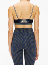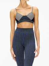 - Bra panelled in our recycled rib, specialty jaquard with gold lurex and printed stripe