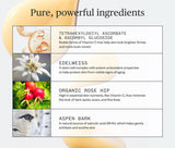 Not all Vitamin C serums are created equal. In fact, most lose their potency by the time they get to your shelf. Ours features highly stable forms of Vitamin C, to ensure peak freshness and potency over time.