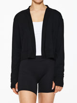 Cozy up in this ultra-luxe, super soft fleece cardigan. Thumbhole sleeves and a casual open front make this cardigan a year-round staple. Made in the USA.