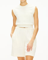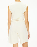 Cut from a butter soft ribbed cotton and modal blend, the brand's sleeveless crewneck sweatshirt is relax fit and light weight. This top is the perfect everyday essential.