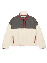 Made from super soft and lofty plush fleece, both bodies feature dropped shoulders, stretch binding around the edges, a tall plush collar, and cozy welt pockets. Their signature print-mix contrast is reminiscent of vintage camping gear.