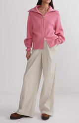 Layer up in the Enrico, a soft knit jacket that blends versatility with comfort. Crafted from the brand's Soft Viscose yarn in a mid-gauge, all-over rib stitch, it has a more substantial feel, perfect for cool weather layering. Complete with a double-ended zip, a fold-back collar, and fashioned armhole trims.
