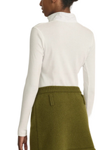 Meet the hybrid that redefines balance. The Junia Henley is cut in a mix of rib cotton and crisp poplin, soft stretch meets sharp structure. Its ribbed body skims close with ease, while the poplin collar and placket slice the silhouette with tailored contrast.