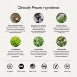 For nights when you cannot get your mind to stop. Deep Sleep combines chamomile, lemon balm, magnesium, valerian root, and L-theanine to ease anxious thoughts, relax the body, and support a deeper night's rest. No melatonin. Non-habit forming.
