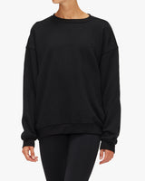 Cut from a butter-soft French terry, Eterne's oversized crewneck sweatshirt is a modern take on a vintage favorite. This classic crewneck features a loose, oversized comfortable fit with dropped shoulders and cuffs at the sleeves and waistband.