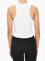 Cropped, tank top, ribbed, wide racerback, front and back shirt tail