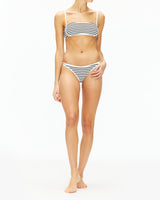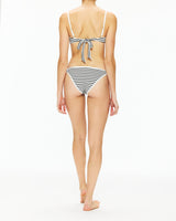 Introducing a new bottom on the block! The Suzi is a classic coverage 'kini, with a mid-rise in the brand's new print - Sailing Along Stripe. Pair it with either the Aspen triangle top or the Hazel bralette.