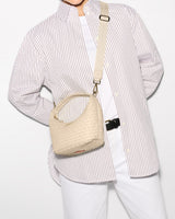 Woven nylon gives the Mini Woven Hobo its signature texture, pairing effortlessly with leather trim and a softly structured shape. With a zip