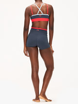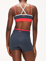 The Paramount Sports Bra in Marine Blue & Strawberry is perfectly designed in the brand's signature Active Lite fabrication, the brand's most lightweight active fabric, for all workout types. This active V-neck sports bra with contrasting panelling offers light compression and adjustable straps at back. Style this piece with the matching Vita Legging or Bikeshort to complete the set.