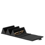 Some moments call for cat eyes, and others are for aviators. The Remi Glasses Case was made for bringing your shades and frames from here to there and back again. This foldable sunglasses travel case features a chic geometric silhouette with magnetic closure that stores up to 3 pairs securely. Skip the scratches with an ultra-soft microfiber lining and elastic straps to keep everything in place. This smartly designed eyeglass holder includes a convenient interior mesh pocket for little extras and a hook for hanging when it’s unfolded. Designed with eco-friendlier Repreve® materials featuring a luxe, subtle shine.