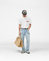 Introducing the Nothing Faster T-Shirt in Flat White, a standard oversized silhouette with a slightly shorter length, made from a lightweight cotton and hemp blend with a stained vintage finish. Designed to age over time, the fabric develops character through wear and washing.