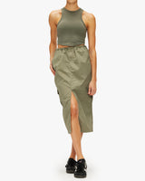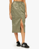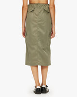 Midi length skirt, can be worn low rise or high rise.